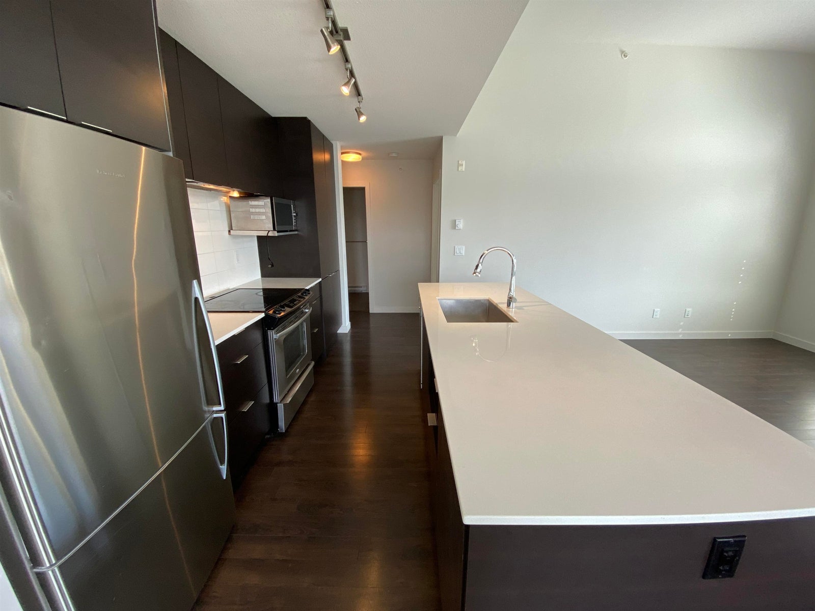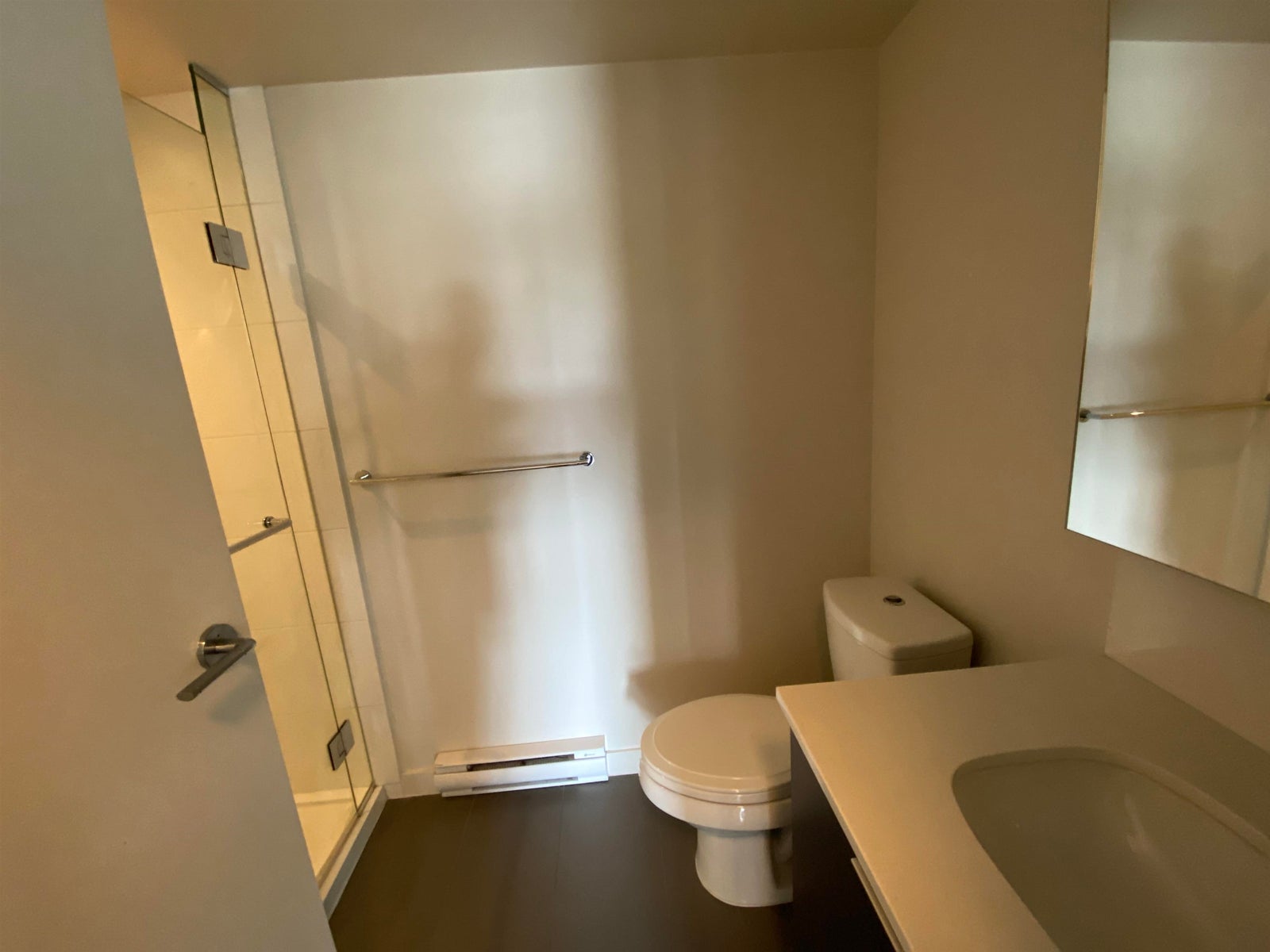 Corner Unit 2 Bed, 2 Bath Penthouse in Sought-After North Vancouver with the view of downtown Vancouver. Stunning southeast-facing corner unit with a spacious 107 sq.ft. balcony and a well-designed split-bedroom layout. This bright and airy home features an open floorplan with expansive living and dining areas, and a gourmet kitchen with quartz countertops, stainless steel appliances, a pantry, and a large island with breakfast bar. The primary bedroom includes a walk-in closet and a spa-like ensuite with a separate glass shower and soaker tub. The generous second bedroom is complemented by a second bathroom with a shower. Additional features include , large windows, one parking stall, and one storage locker. Walking distance to shops, restaurants ,trail, an public transportation.