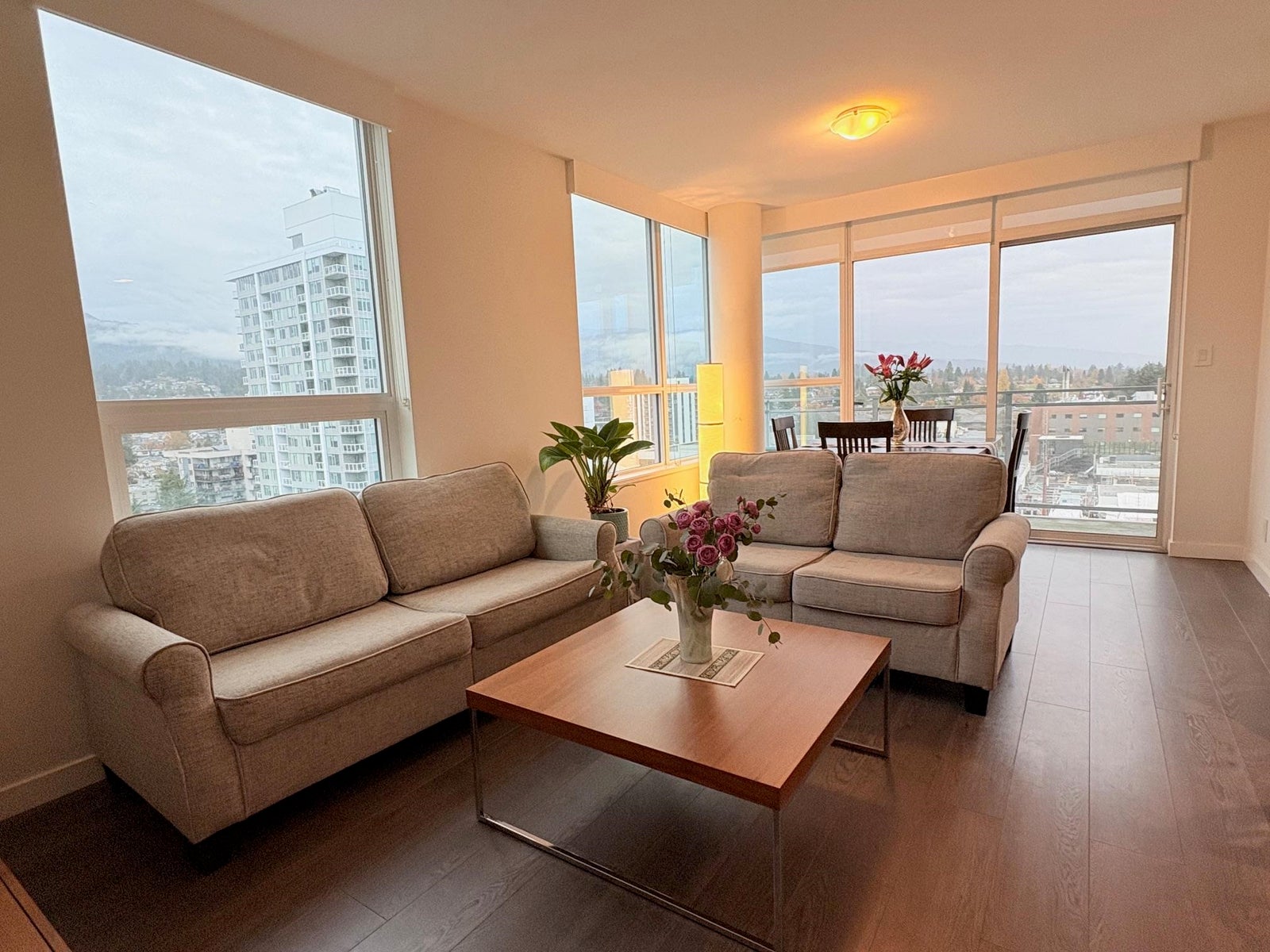 CENTREVIEW – Developed by Onni in the heart of Central Lonsdale. Enjoy breathtaking mountain, city, and ocean views from this Northeast-corner home, with beautiful morning sunlight streaming through every window. This open-concept unit offers A/C with high-efficiency heating and cooling, floor-to-ceiling windows, kitchen with custom-designed cabinetry, laminate flooring, and high-quality paneled appliances. Centreview is centrally located near groceries, restaurants, shops, transit, banks, City Hall, and the library. Luxury amenities include swimming pool, sauna/steam room, playground, huge gym and exercise area, party room, yoga room, and squash court. BONUS of 2 guest suites, a residents’ lounge, concierge service, and plenty of visitor parking.